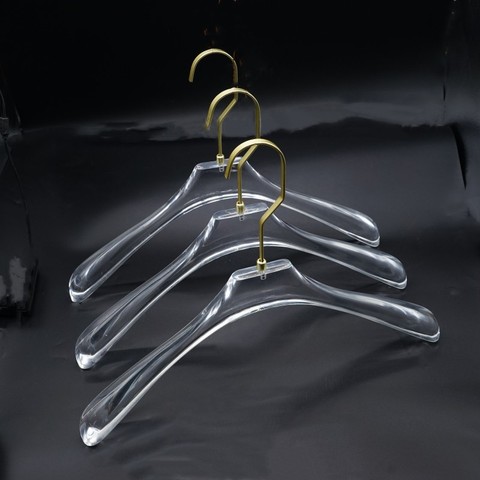 42.5*3.0cm cao minh bạch Acrylic vàng móc áo cho cửa hàng quần áo sang trọng Acrylic quần áo móc áo